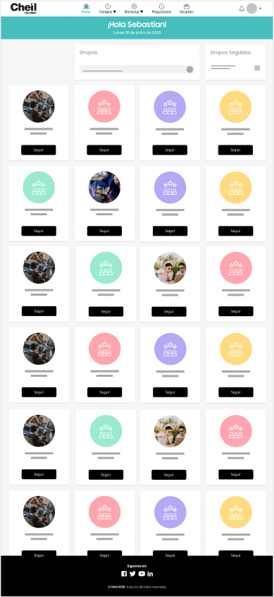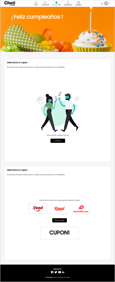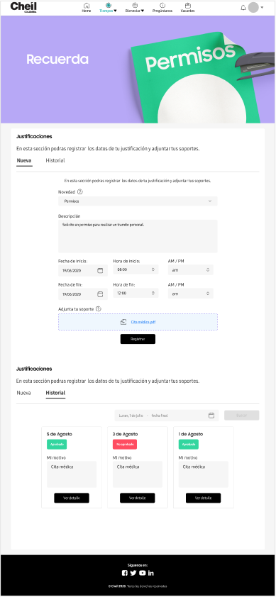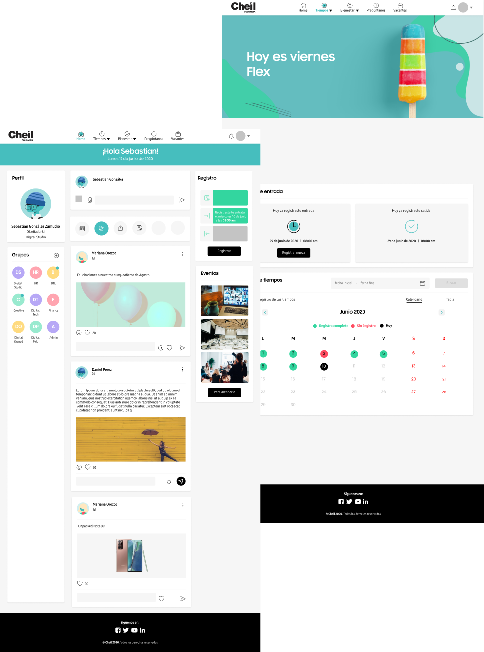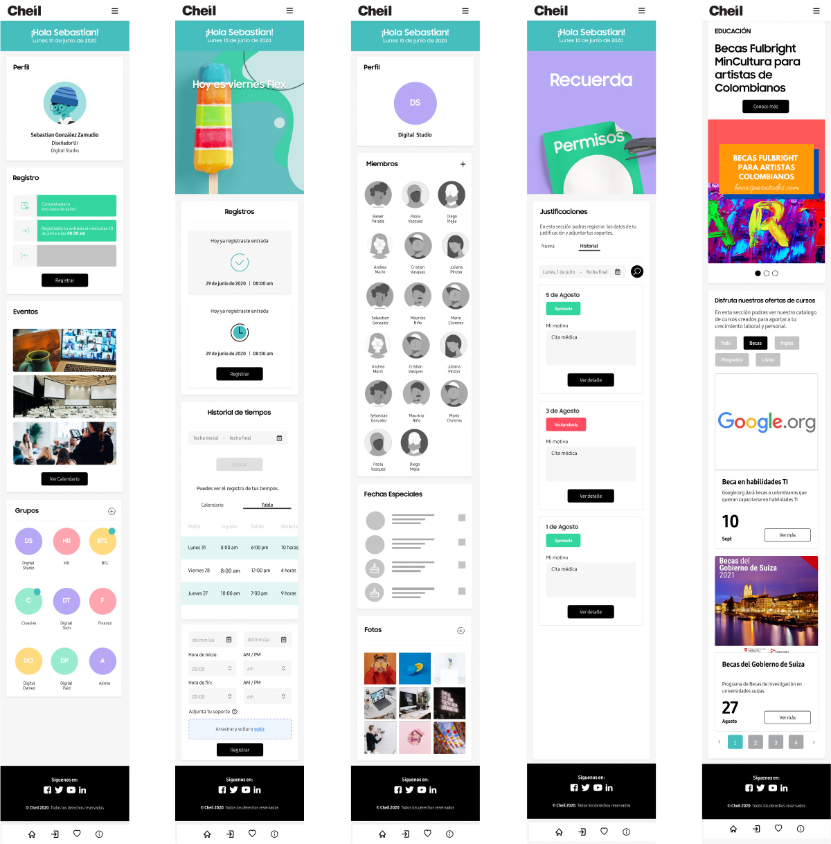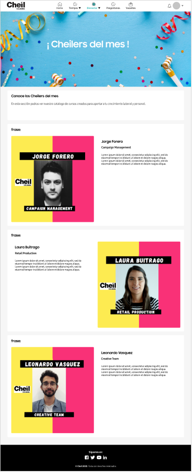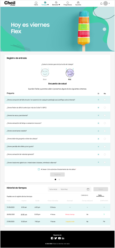 It is the renewal of the current Cheil human resources platform, this project not only allows Cheilers to register their arrival and departure times but also to be updated on upcoming events, news, activities, birthdays, and new income that happen on the day-to-day of the agency.
