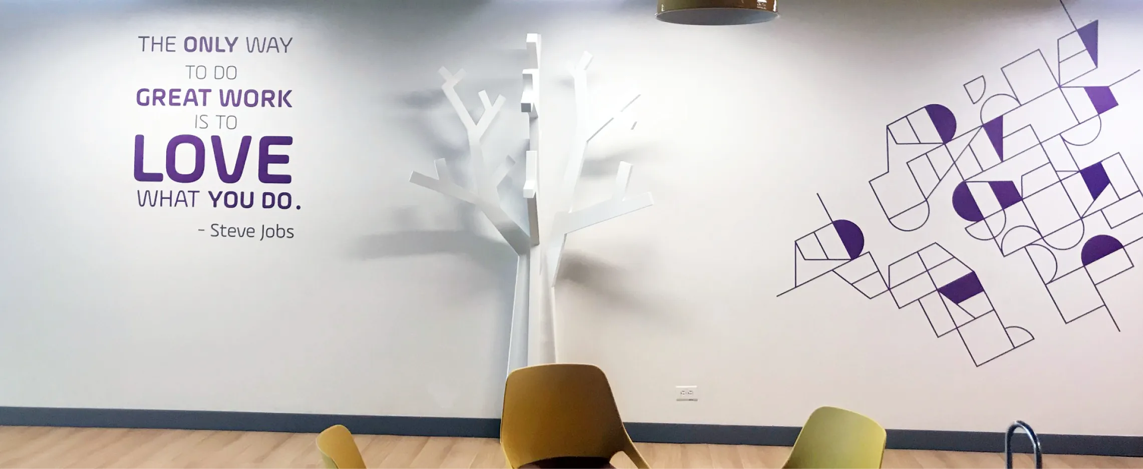 These digital illustrations with positive phrases that represent the values of PayU. They are currently located on the walls of common areas, the main meeting room of the new PayU building. This project allowed me to link my passion for illustration and interior design.